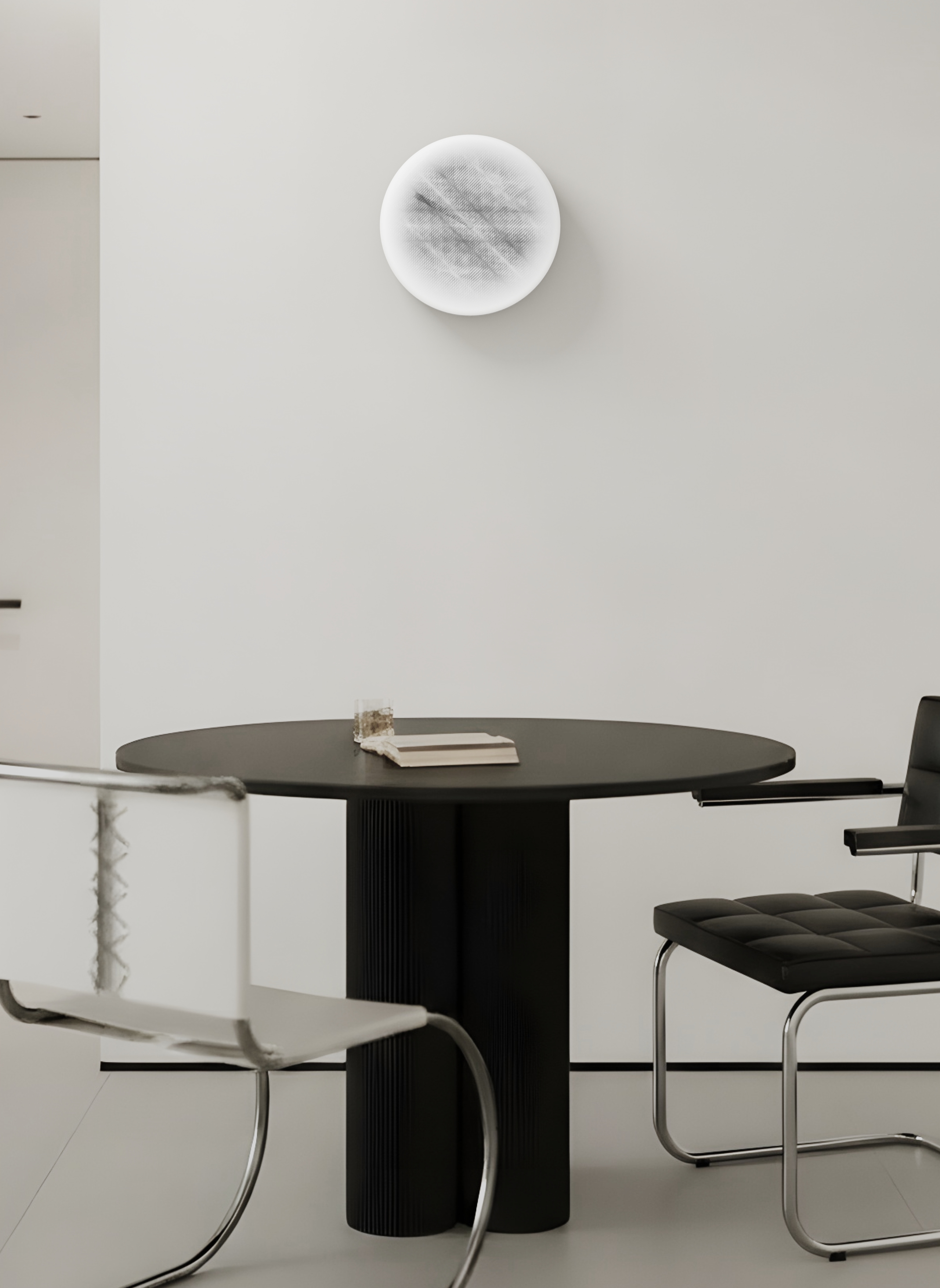 With its transparent glass body and subtle tones of grey and white, Flow of Time reflects the serenity of water in motion. Its design mirrors ripples and currents, extending into the deeper rhythm of life itself. A luminous stream for your wall, it reminds you to move effortlessly, to breathe with the flow, and to embrace the natural passage of each day.